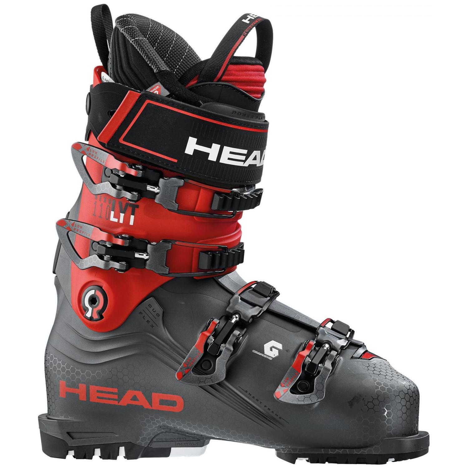 Одна из самых популярных моделей серии Nexo Lyt с жёсткостью 110/100 - супер легкие ботинки уровня Performance. Минимальный вес ботинка достигается использованием в новой принципиальной конструкции Smart Frame такого технологичного, жесткого и супер легкого материала, как графен. Попробуйте примерить эти ботинки - и вы поразитесь их легкости, комфорту и точности колодки, ведь они на 30% легче. Ширина колодки 100 мм (26,5) оптимальна для продвинутых лыжников. Сочетание систем термоформовки внешнего пластика Form Fit и внутренника Perfect Fit обеспечивает практически идеальную посадку ботинка по ноге для любого самого требовательного эксперта. Система Liquid Fit даст дополнительную возможность сразу или через несколько сезонов катания еще более уплотнить зону пятки ботинка.