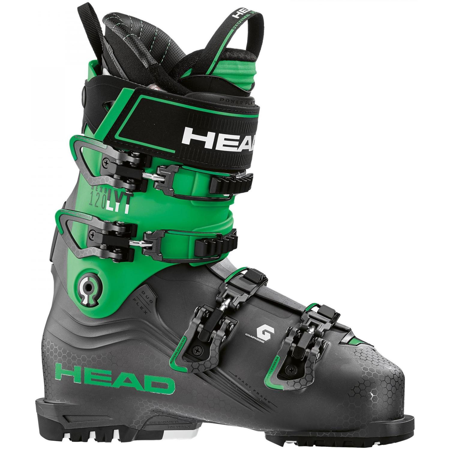 Экспертная модель ботинок серии NEXO LYT с жёсткостью 120/110 - это супер легкие ботинки уровня Performance. Минимальный вес ботинка достигается использованием в новой принципиальной конструкции Smart Frame такого технологичного, жесткого и супер легкого материала, как графен. Попробуйте примерить эти ботинки - и вы поразитесь их легкости, комфорту и точности колодки, ведь они на 30% легче. Ширина колодки 100 мм (26,5) оптимальна как для экспертно катающихся лыжников, так и для продвинутых. Сочетание систем термоформировки внешнего пластика Form Fit и внутренника Perfect Fit обеспечивает практически идеальную посадку ботинка по ноге для любого самого требовательного эксперта. Система Liquid Fit даст дополнительную возможность сразу или через несколько сезонов катания еще более уплотнить зону пятки ботинка.