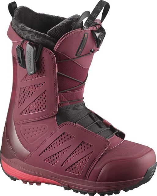 Ботинки сноубордические Salomon 17-18 Hi-fi Burgundy/Pomegranate - сочетание оптимальной жесткости с непревзойденным комфортом достигается благодаря использованию всех передовых технологий Salomon, которые считаются признанным лидером в производстве сноубордической обуви. Конструкция Full Custom Fit способствует мягкой и плотной посадке ноги, эргономичная стелька Ortholite C3 сохраняет тепло и обеспечивает отличную амортизацию, а шнуровка Zone Lock позволяет зашнуровать ботинок за считаные секунды.