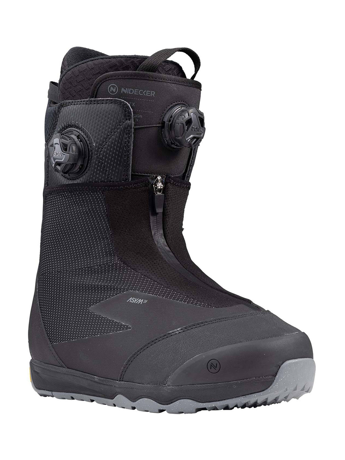 • ASYM 3F – ассиметричная конструкция ботинка позволяет надежно фиксировать стопу и икру, а так же идеально сочетается со стрепами креплений Nidecker и Flow, что исключает чрезмерное давление на стопу;