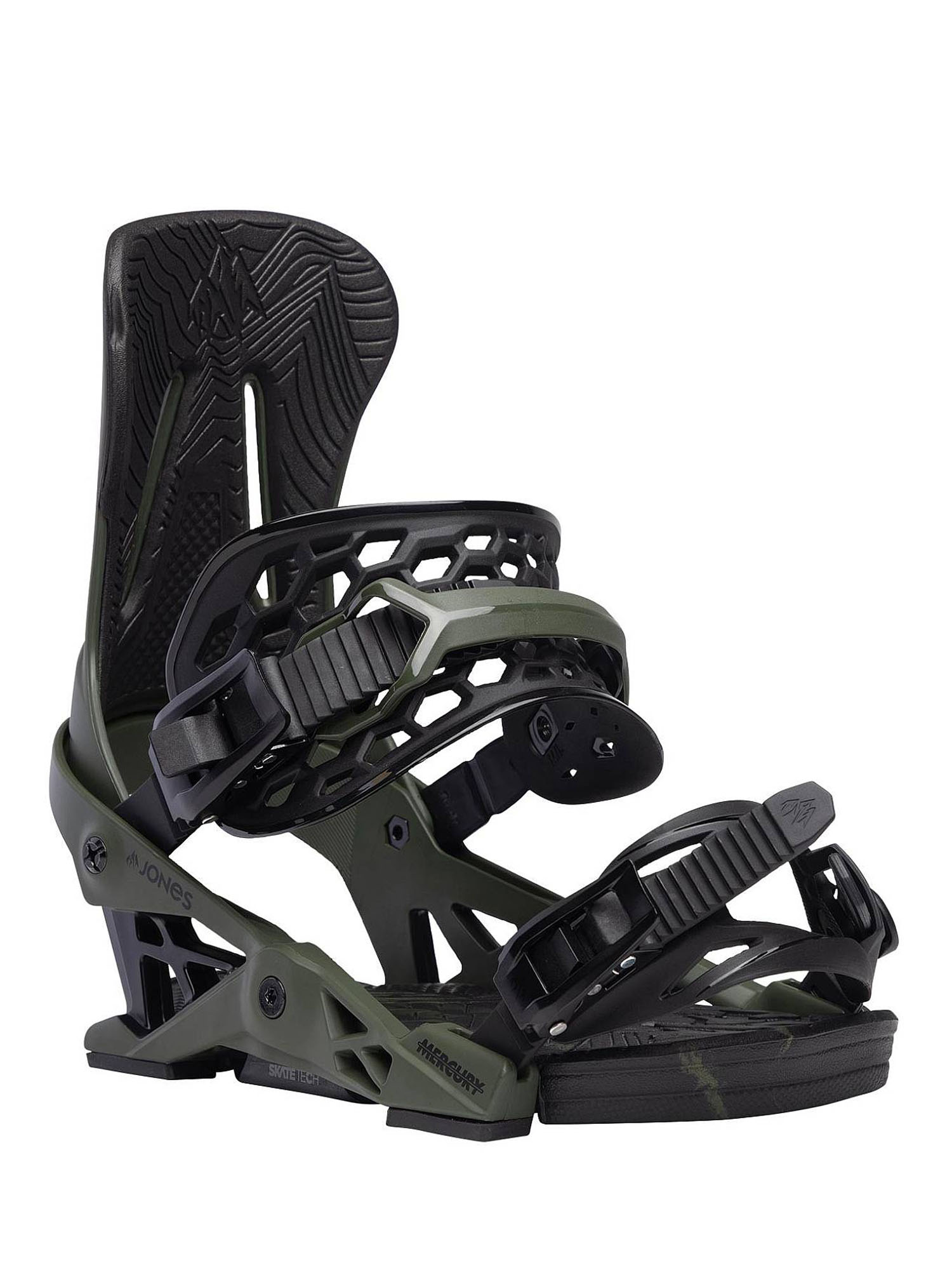 Jones Mercury – мощные универсальные крепления идеально подходят для творческого фрирайда и вездеходного фристайла. Mercury можно настроить в диапазоне двух режимов: Surf или Freeride. Для этого поменять втулки. Эти крепления созданы для опытных райдеров, которым нужны чрезвычайно удобные и отзывчивые крепления. Mercury оснащены технологией Skate tech, которая улучшает контроль над доской + снижает утомляемость ног за счёт передачи энергии непосредственно от креплений к краям доски. А также высокой спинкой Control Flex, которая поглощает вибрации и обеспечивает надёжную поддержку при поворотах и в приземлениях после прыжка.